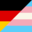 a mask in the shape of a blahaj stuffed animal toy in trans pride colors overlayed on a german national flag